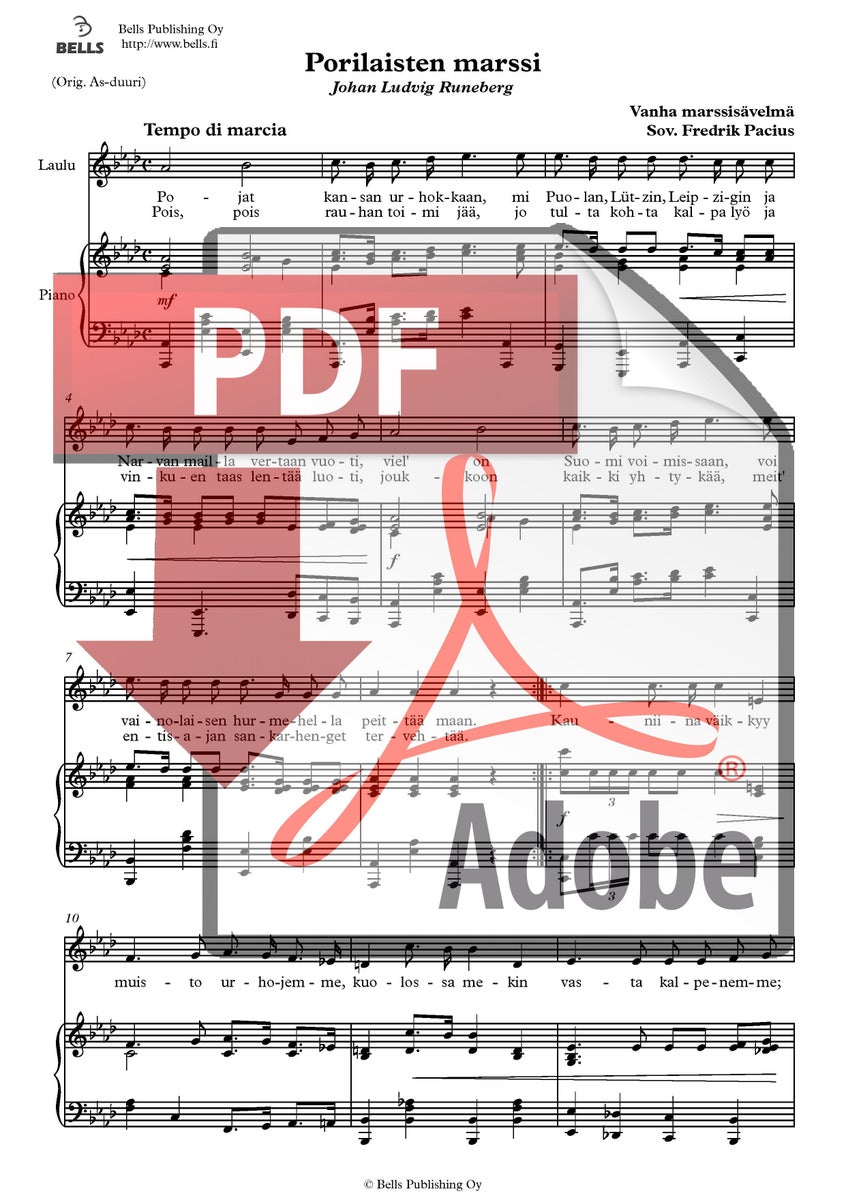 Vanha marssisävelmä (sov. Fredrik Pacius): Porilaisten marssi (san. Johan Ludvig Runeberg, suom. Paavo Cajander)