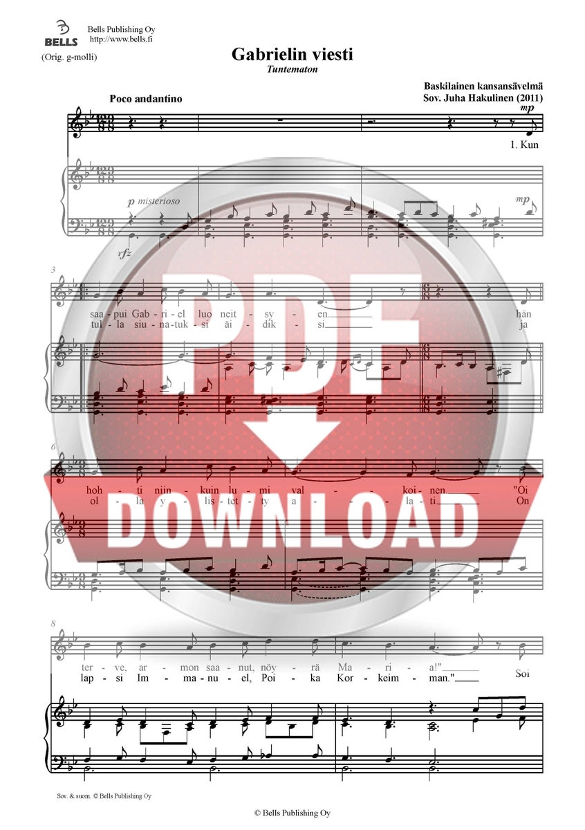© Tämä teos on tekijänoikeudensuojan alainen. Julkisesti esitettäessä jokainen esittäjä tarvitsee laillisen kopion nuotista.