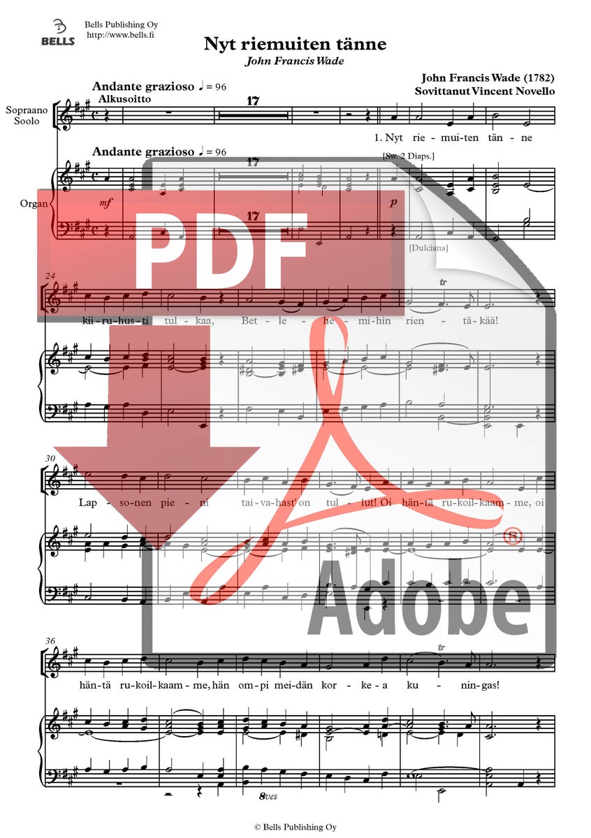 John Francis Wade (sov. Vincent Novello): Nyt riemuiten tänne ('Adeste Fideles') (san. John Francis Wade, suom. Pekka Juhani Hannikainen)