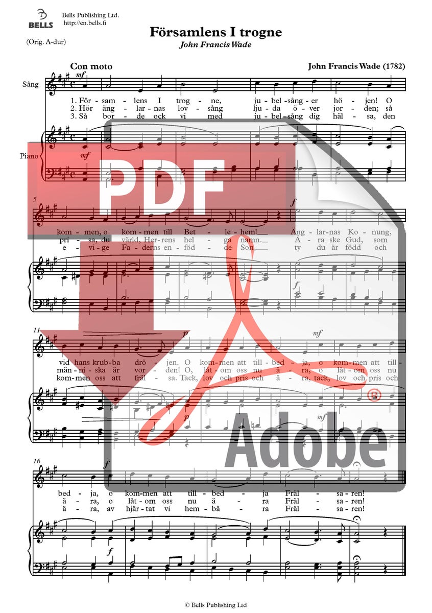 John Francis Wade (sovittaja tuntematon): Församlens I trogne ('Adeste fideles') (1782) (san. John Francis Wade, ruots. tuntematon)