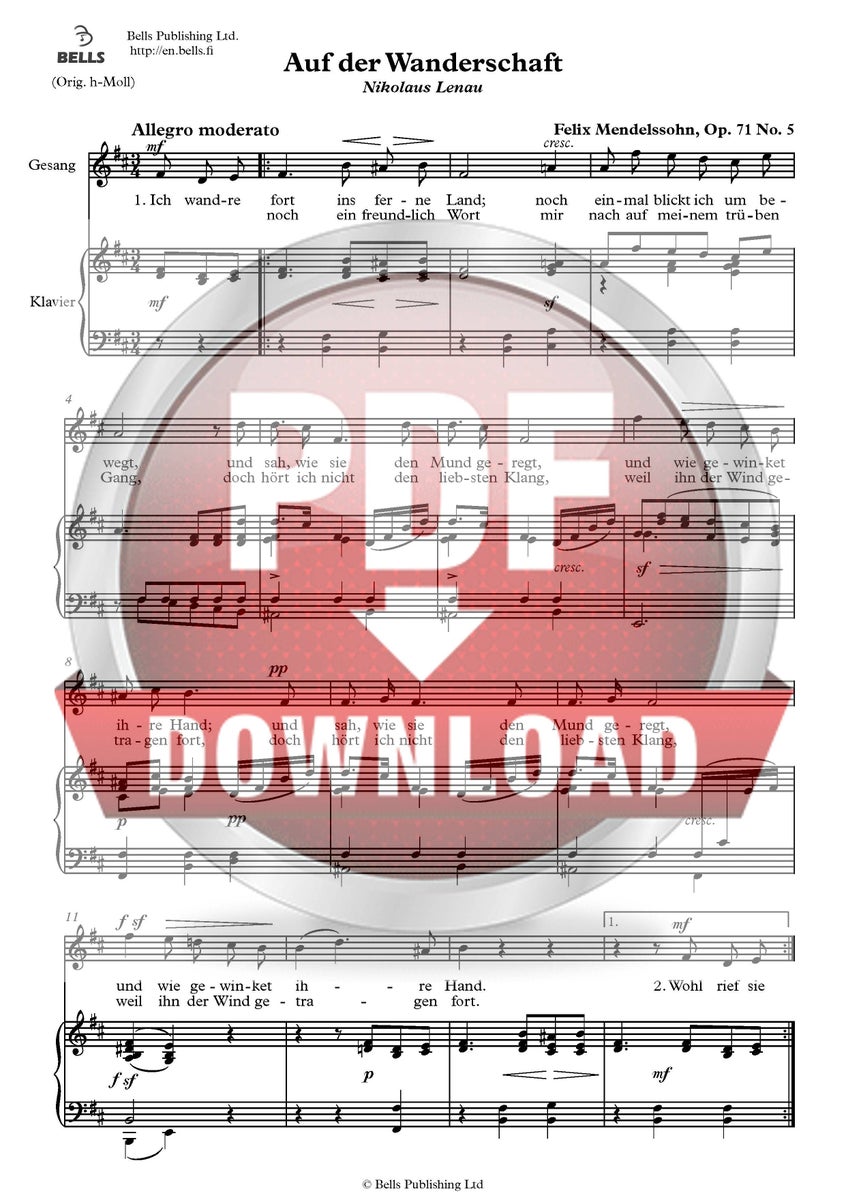 Felix Mendelssohn Bartholdy: Auf der Wanderschaft, Op. 71 No. 5 (san. Nikolaus Lenau)