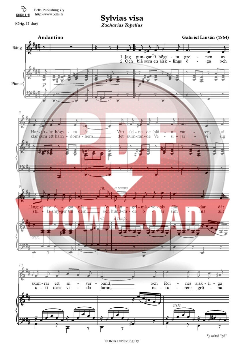 Gabriel Linsén: Sylvias visa (Kesäpäivä Kangasalla) (san. Zacharias Topelius, suom. P. J. Hannikainen)