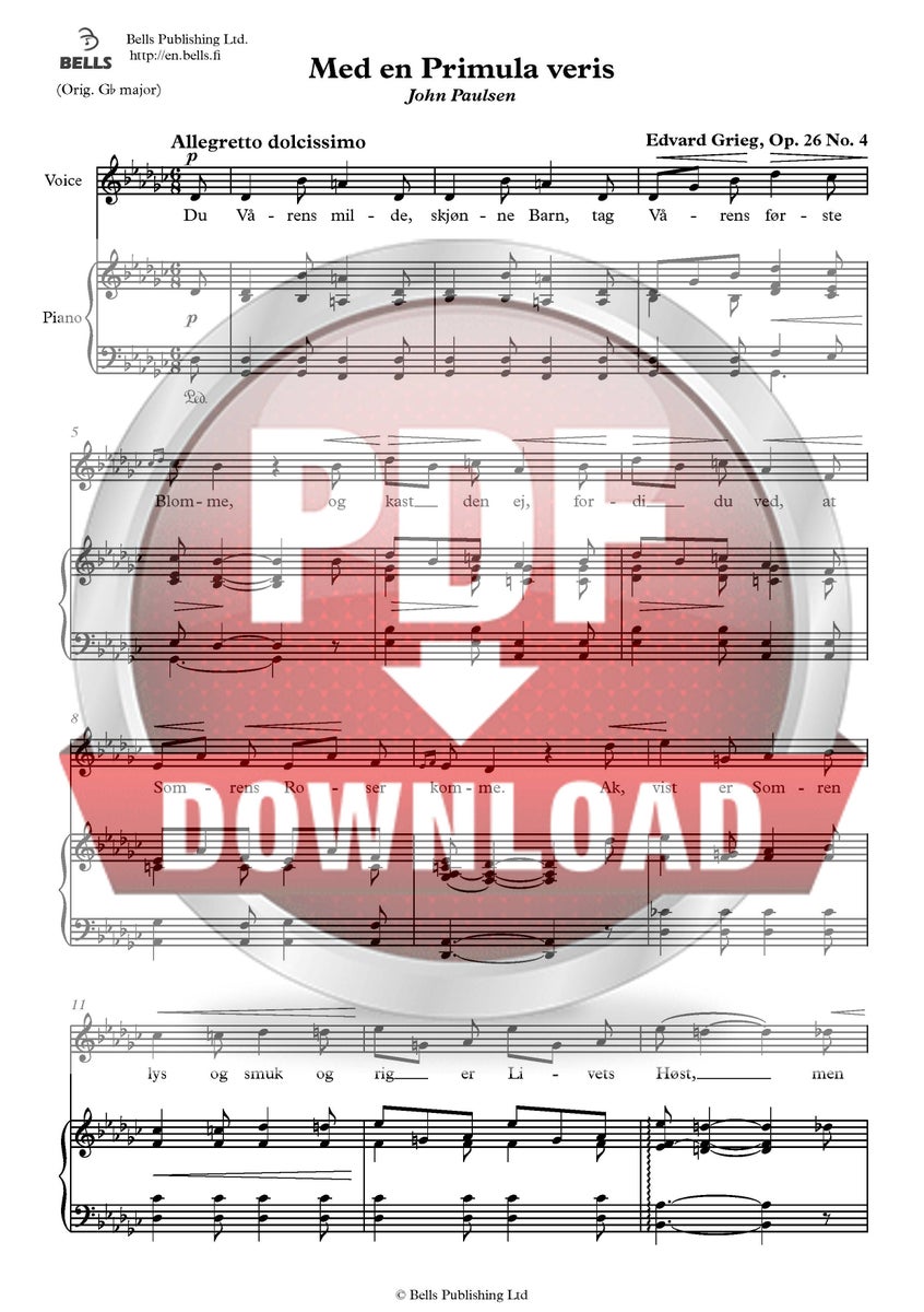 Edvard Grieg: Med en Primula veris, Op. 26 No. 4 (san. John Paulsen)