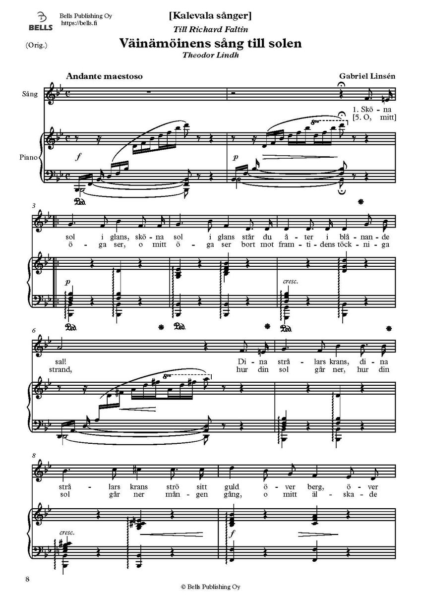 Väinämöinens sång till solen (B-duuri) [ambitus: b-d2]