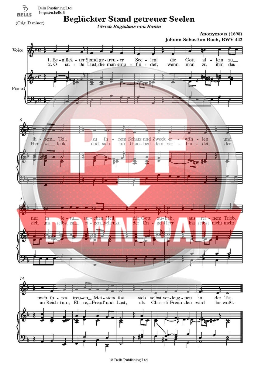 Tuntematon säveltäjä (sov. Johann Sebastian Bach): Beglückter Stand getreuer Seelen, BWV 442 (san. Ulrich Bogislaus von Bonin)
