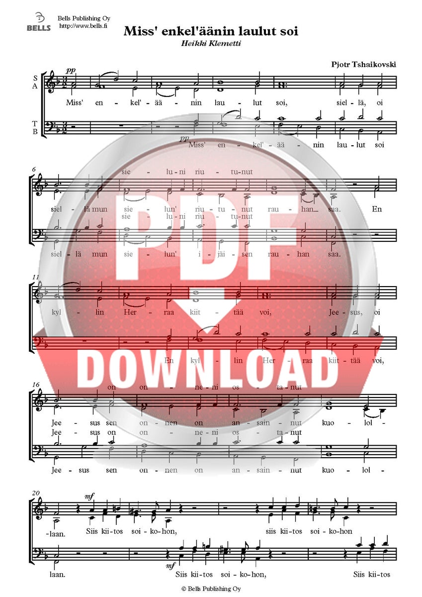 Pjotr Tshaikovski: Miss' enkel'äänin laulut soi (sanat suomeksi mukaillut Heikki Klemetti)