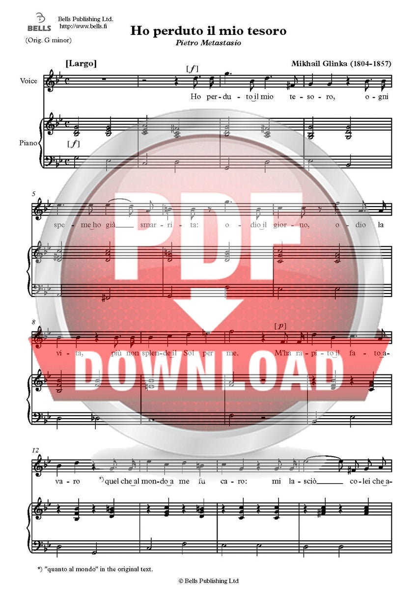 Mihail Glinka: Ho perduto il mio tesoro (san. Pietro Metastasio)
