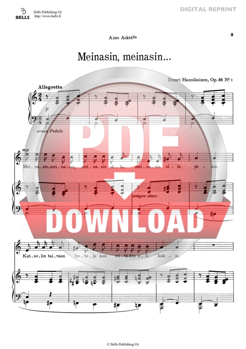 Suomalainen kansanlaulu (sov. Ilmari Hannikainen): Meinasin, meinasin..., Op. 36 No. 1 (san. tuntematon)