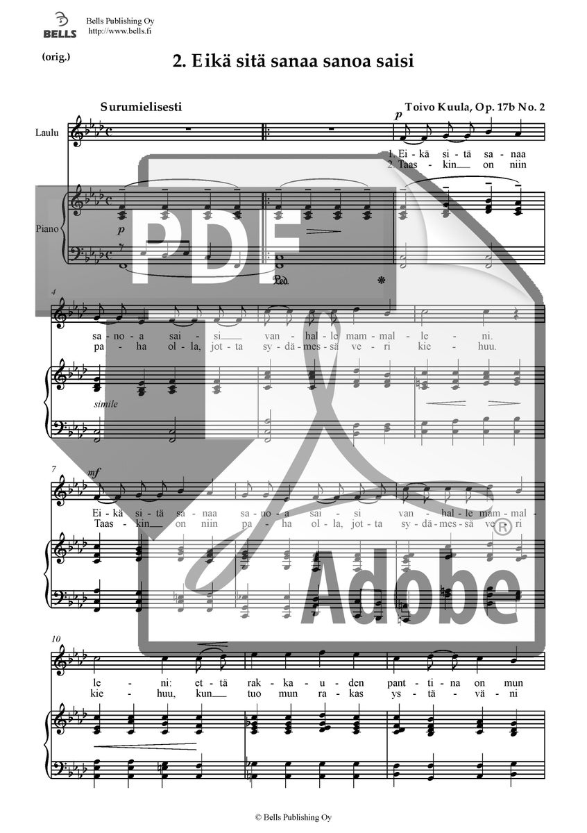 Eteläpohjalainen kansansävelmä (sov. Toivo Kuula): Eikä sitä sanaa sanoa saisi, Op. 17b No. 2 (san. tuntematon)