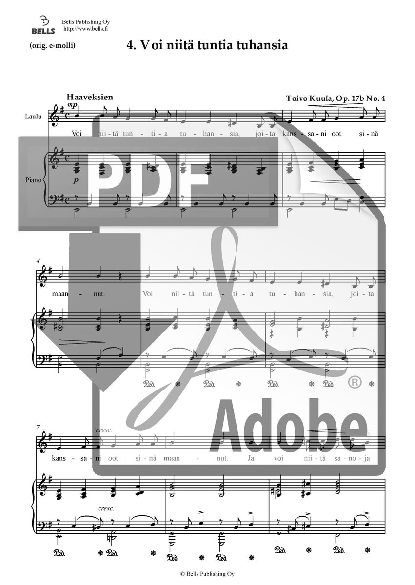 Eteläpohjalainen kansansävelmä (sov. Toivo Kuula): Voi niitä tuntia tuhansia, Op. 17b No. 4 (san. tuntematon)