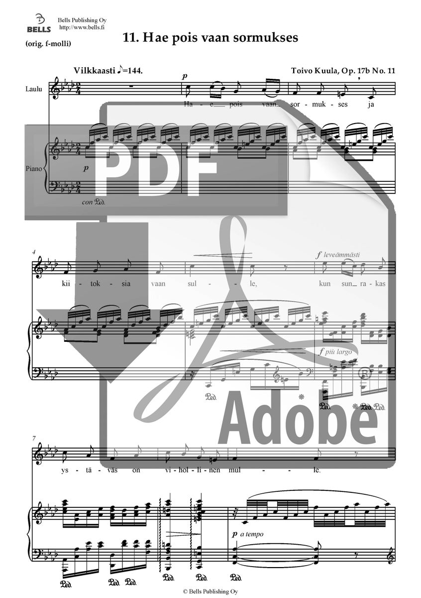 Eteläpohjalainen kansansävelmä (sov. Toivo Kuula): Hae pois vaan sormukses, Op. 17b No. 11 (san. tuntematon)