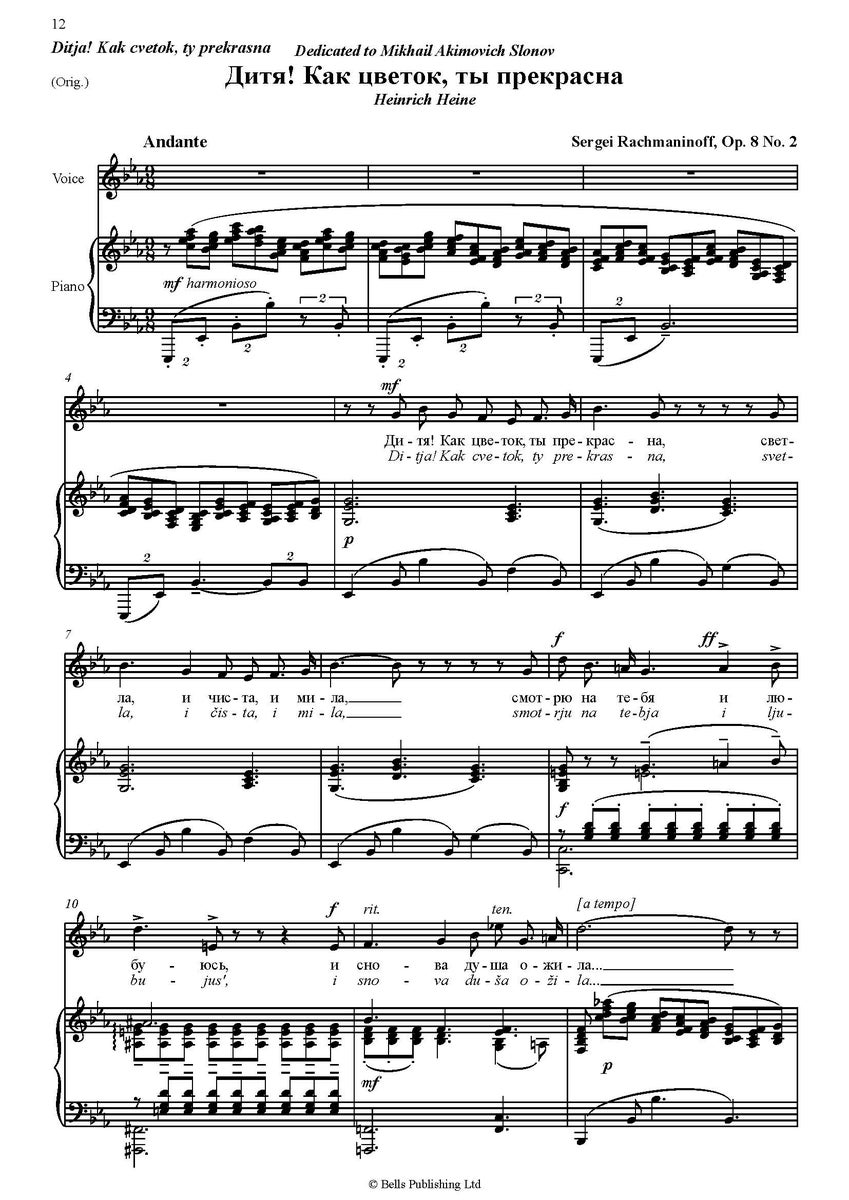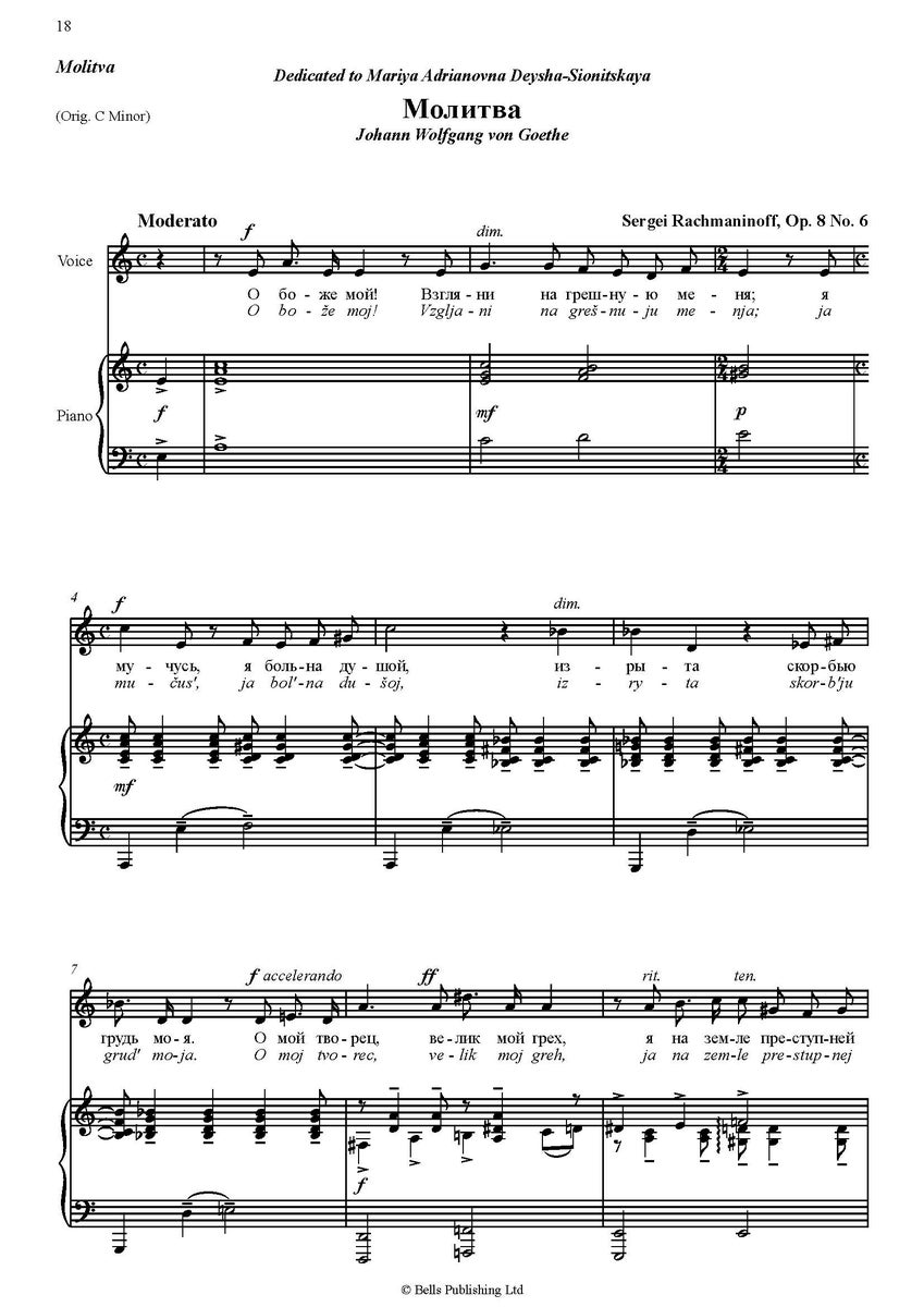 Kokoelma sisältää Sergei Rahmaninovin (1873-1943) Kuusi romanssia, Opus 8 lauluäänelle ja pianolle. Edition (for medium low voice) sävellajit sopivat parhaiten matalammalle baritoni- ja mezzosopraanoäänelle.